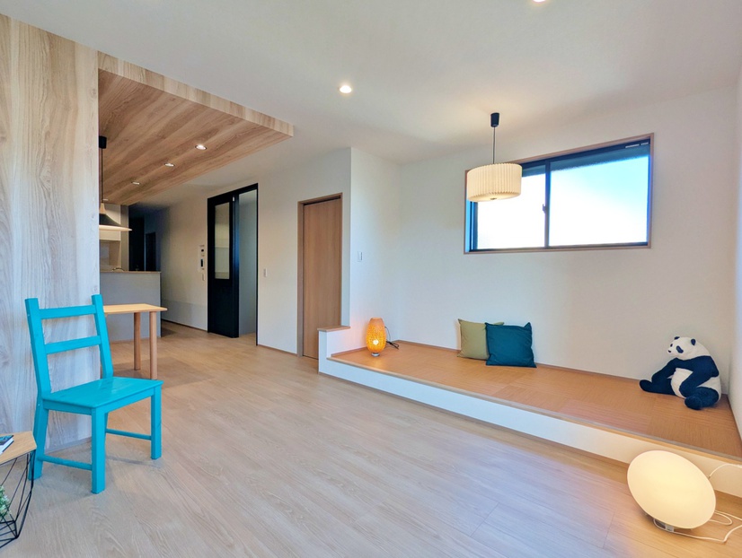そしてリビングに繋がるのは、「小上がりスペース」。和の雰囲気を醸す「籐」デザインの床材でオシャレな空間です。