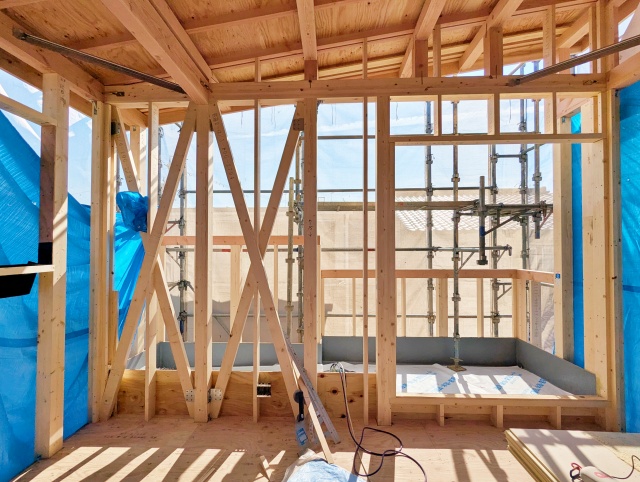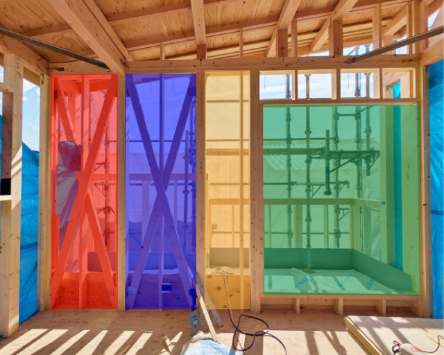 斜めの筋交いがたすき掛けに2本入っている壁です。