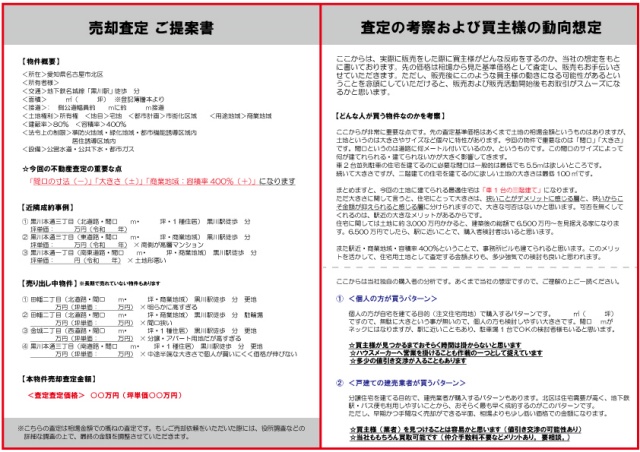 その査定書システムが把握している成約事例なども組み込まれ
